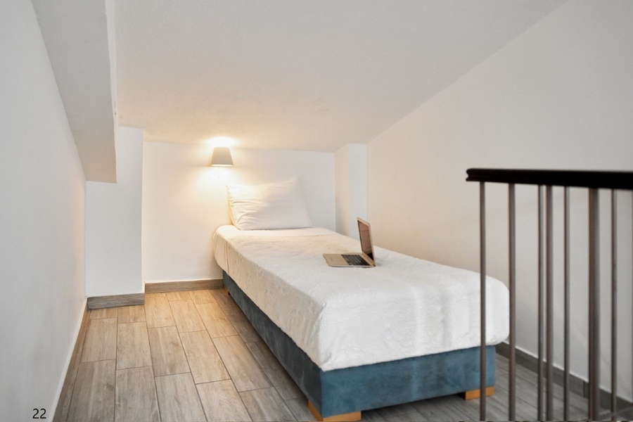 No: 21 i 23 1/4 mezoneta - I SPRAT / II SPRAT na prvom spratu se nalazi čajna kuhinja i sofa (2*180cm*75cm) , a na drugom spratu se nalazi spavaća soba sa bračnim ležajem (200cm*150cm).