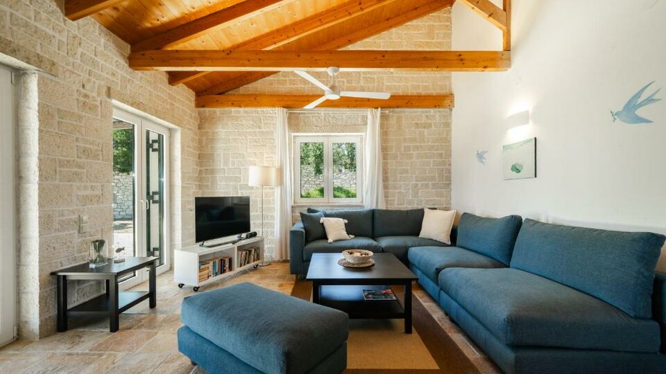 Svaka vila odlikuje se rustičnom spoljašnjom arhitekturom, koja se savršeno uklapa u prirodni pejzaž Paksosa, dok enterijeri odišu modernim mediteranskim stilom, elegancijom i funkcionalnošću. Spoj tradicionalnog kamena i toplih, savremenih detalja stvara atmosferu sofisticirane, ali nenametljive ekskluzivnosti.